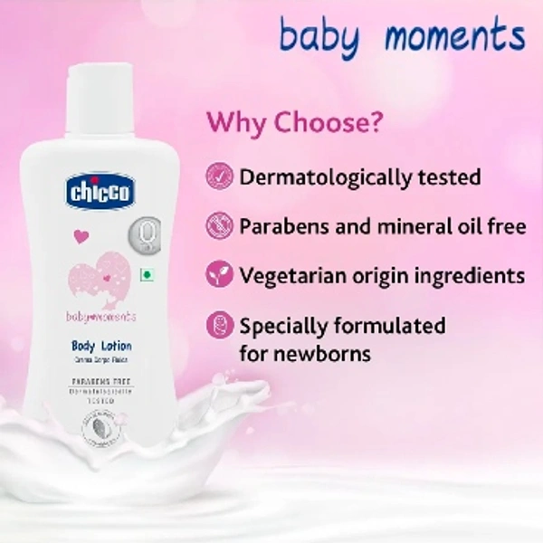 Chicco baby moments Body Lotion for high moisturising skin everyday.