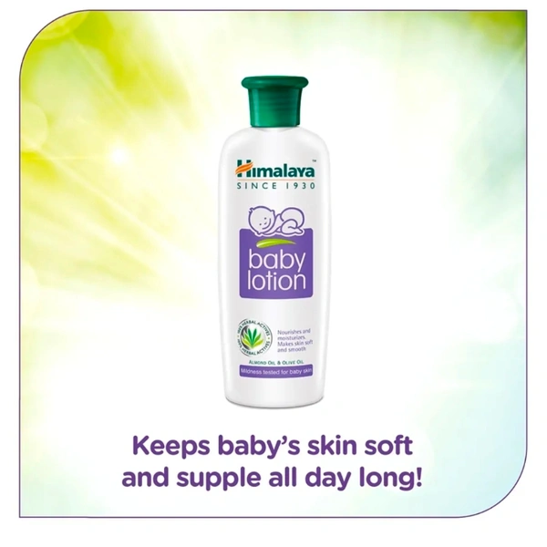 Key Features: Excellent moisturizer with the power of herbs Olive Oil: Vitamin E nourishes and keeps your baby’s skin moisturized Olive Oil & Almond Oil: Vitamin E nourishes the skin and keeps skin soft & moisturized Khus Grass: Keeps skin cool and fresh Free from Parabens, Phthalates & Synthetic Colors, the usual factors for rashes & allergies Specifications: Brand - Himalaya Herbal Type - Baby Lotion Age - 0 Months Items included in the Package: 1 pack of Himalaya Baby Lotion